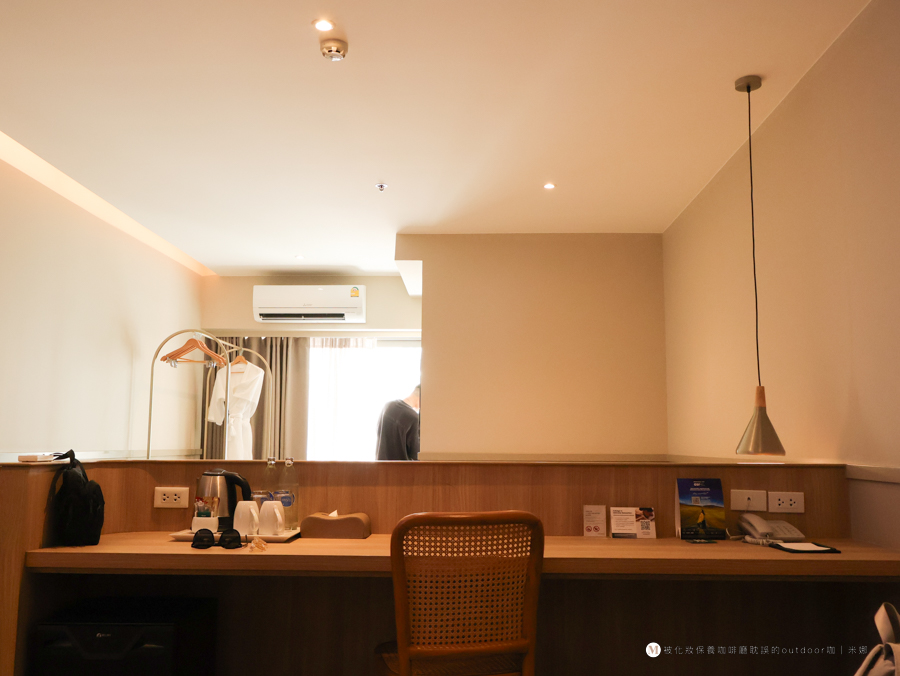當初訂這家飯店,就是看到房間很廣闊、陽光很好,還有早餐、泳池很美!小紅書的照片沒有騙人,雙人房有對外窗,陽光灑進來很舒服,有一個超大的雙人床、書桌、小客廳外。對於重度3C使用者來說,房間插座非常夠!