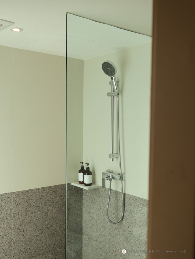 蓮蓬頭盡量往牆壁那側使用。我們第一天晚上沒注意,之後稍微注意一下就沒事了~