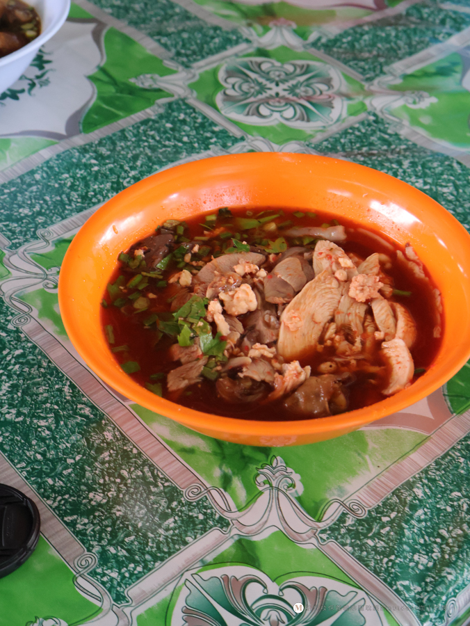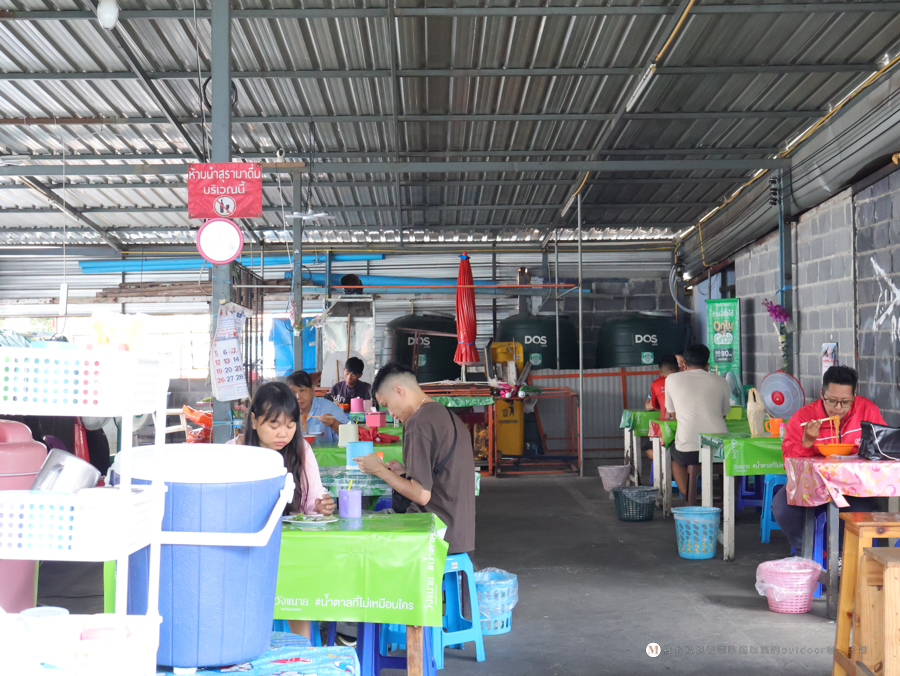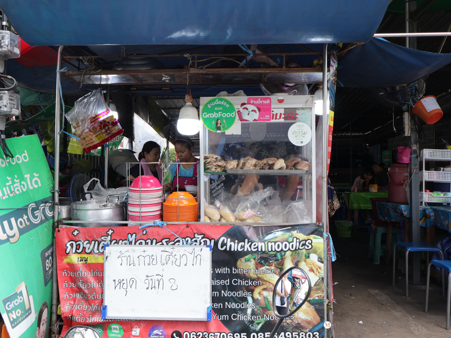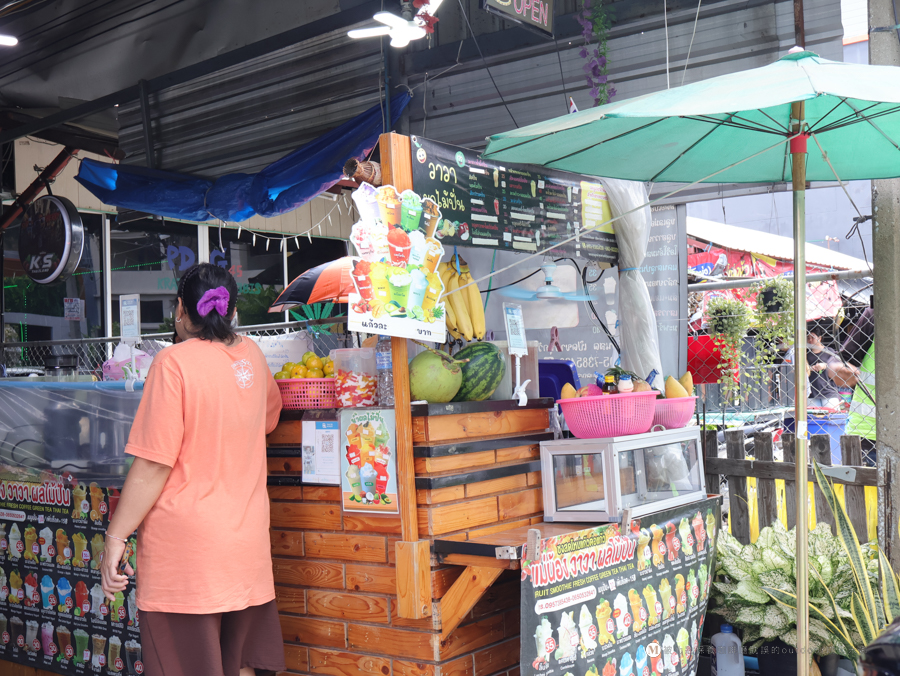 對面的鐵皮物、一直延伸一小段區域,都是很像黃昏市場的攤販。很多當地人會買,我們幾個朋友在去機場前也吃了其中一家、這幾天也買了那邊的泰奶。