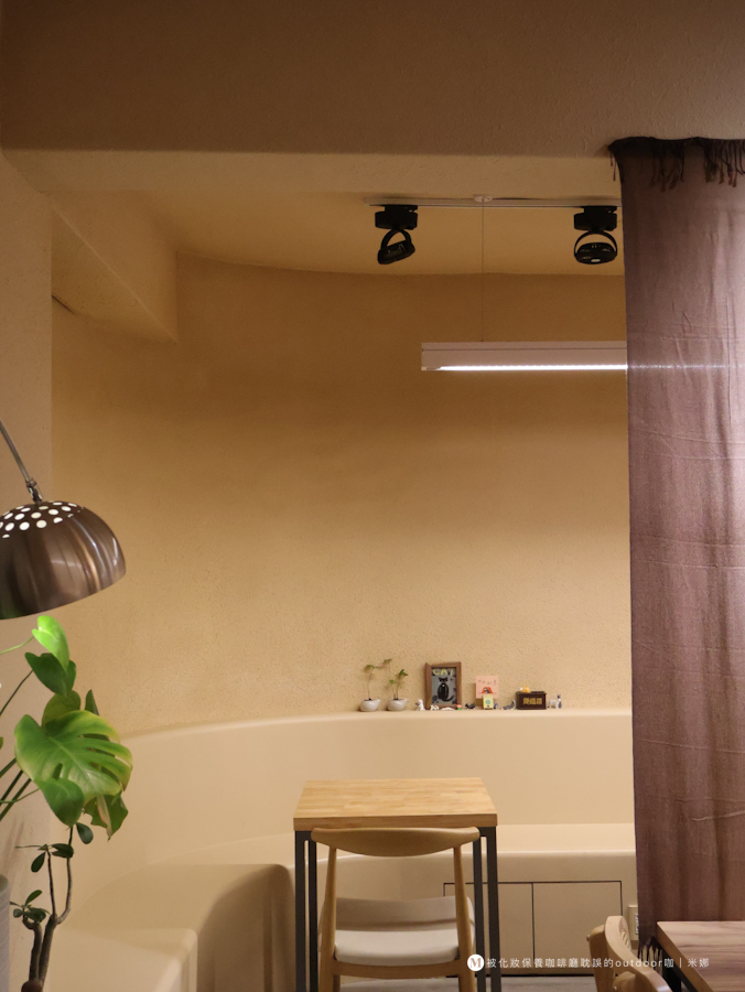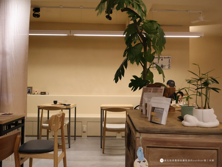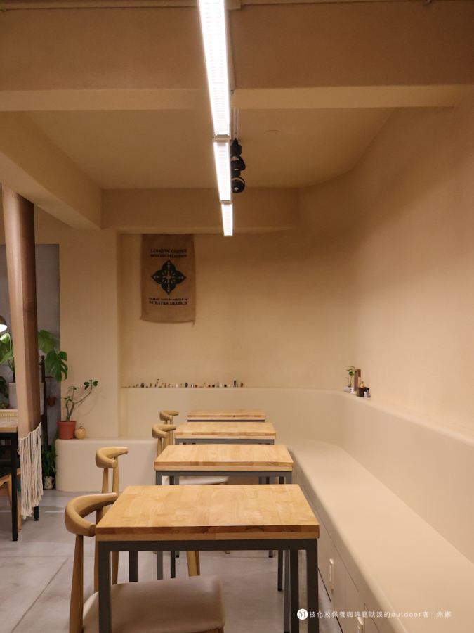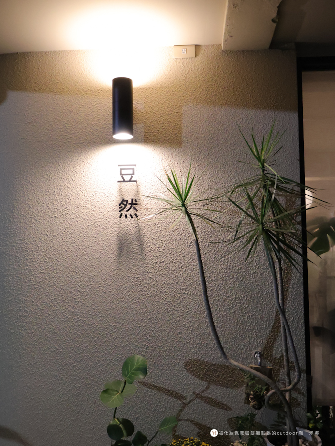 很喜歡豆然咖啡一大片落地窗搭配乾淨的奶油色紋理牆面上,就用一整燈照著咖啡廳的名字,再搭配植栽營造出韓系、舒服大方的感覺。一推開大門,迎接著是有著與外面相同的奶油色紋理走道,慢慢帶著我們走入韓國的感覺。
