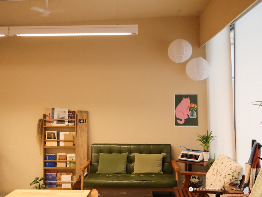 在靠近落地窗的區域,有雙人沙發。適合聊天敘舊、或是看書的朋友,在這邊白天還會有陽光透進來。馬上就獲得一個美好的午後時光!