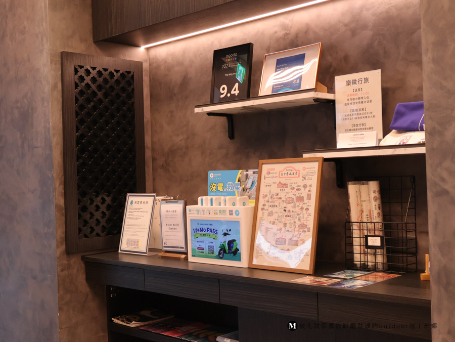 大廳很簡單,一邊是櫃檯、一邊是可以讓人自由拿取的一些台中旅遊DM、以及租借行動電源的機台。